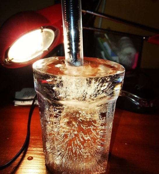 W Doświadczeniu Pulsation Pen umieszczony jest w szklance wody i poddany jest zamrożeniu. Dzięki ujemnej temperaturze i powolnym zamarzaniu możemy zaobserwować tor przemieszania się pęcherzyków powietrza napędzanych przez energię Pulsation Pen’a.