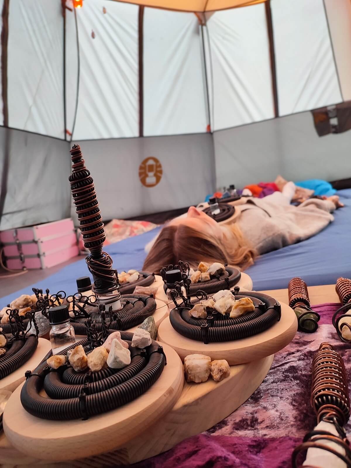 • In the center of each triple coil, you can place GANS, crystals, or organic materials (e.g. powdered herbs). Their bioenergetic field is then amplified and dispersed into the environment, influencing both space and the human body.